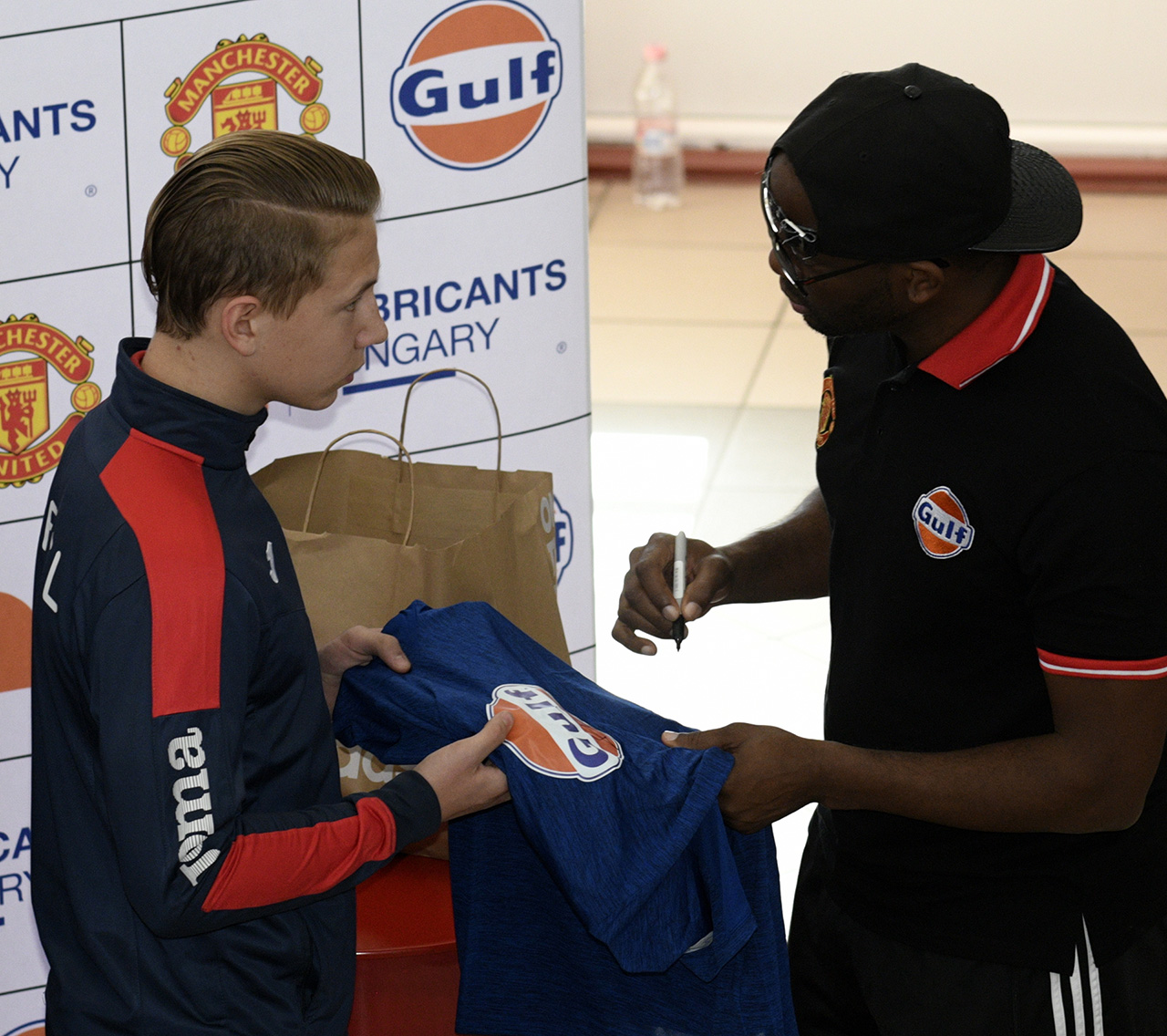 Cégünk és a #Gulf Oil International nevében egy exkluzív jótékonysági célú sportrendezvényre került sor. Köztudott, hogy a Gulf Oil globális marketing partnere a #ManchesterUnited futball csapata. Meghívásunkra hazánkba látogatott a csapat egyik neves játékosa, #LouisSaha, aki kísérőjével együtt levezetett egy edzést 12 éves korosztályos gyerekek számára. Az esemény Csepelen a Nagy Imre Általános Iskola sportpályán zajlott,ahol a Csepeli Utánpótlás Sportegyesület fiatal focistái kaptak instrukciókat a futballsztártól.