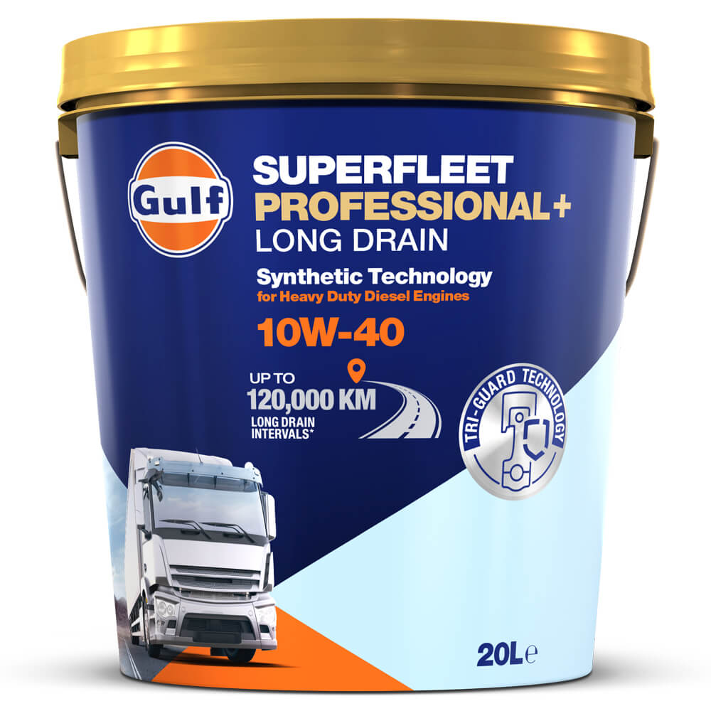 A Gulf Superfleet Professional+ Long Drain 10W-40 egy extra nagy teljesítményű, félszintetikus dízelmotorolaj, amelyet kizárólag az új generációs, nagy teljesítményű, alacsony károsanyag-kibocsátású motorokhoz terveztek, amelyeket szigorú közúti alkalmazásokban használnak. Ezt az olajat a legfejlettebb adalékanyag-technológia és a legjobb minőségű alapfolyadékok felhasználásával állították össze, amelyek kiváló magas hőmérsékleti viszkozitástartást, alacsony hőmérsékleti folyékonyságot, illékonyság-szabályozást és üzemanyag-fogyasztás javulást biztosítanak. Az ebben az olajban használt legújabb, alacsony SAPS (szulfátos hamu, foszfor, kén) adalékanyag-kémia megkönnyíti az olyan kibocsátáscsökkentő rendszerek hatékonyságának fenntartását, mint a dízel részecskeszűrő (DPF), amelyet egyes járműgyártók az Euro IV, Euro V és Euro VI kibocsátási követelmények teljesítéséhez használnak.